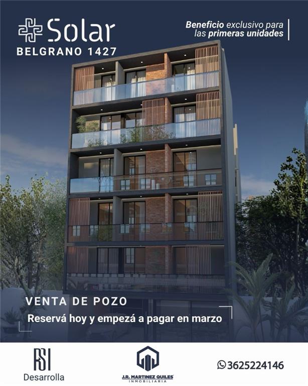 VENTA DE POZO - SOLAR BELGRANO 1427 Av. Belgrano 1427 | Resistencia PRECIO DE LANZAMIENTO Beneficio exclusivo: para las primeras unidades Departamentos de 1 y 2 dormitorios Mínima entrega inicial Financiación flexible: entrega del 30% y el saldo hasta 24 cuotas Edificio a construir de 5 pisos Amenities: quincho y terraza Cocheras cubiertas y descubiertas disponibles Plazo de entrega estimada: 24 meses Ideal para vivir o invertir con alta proyección de valorización. Construye: Patagonia Construcciones SRL Consultanos para más información al WhatsApp 54 9 362 522-4146